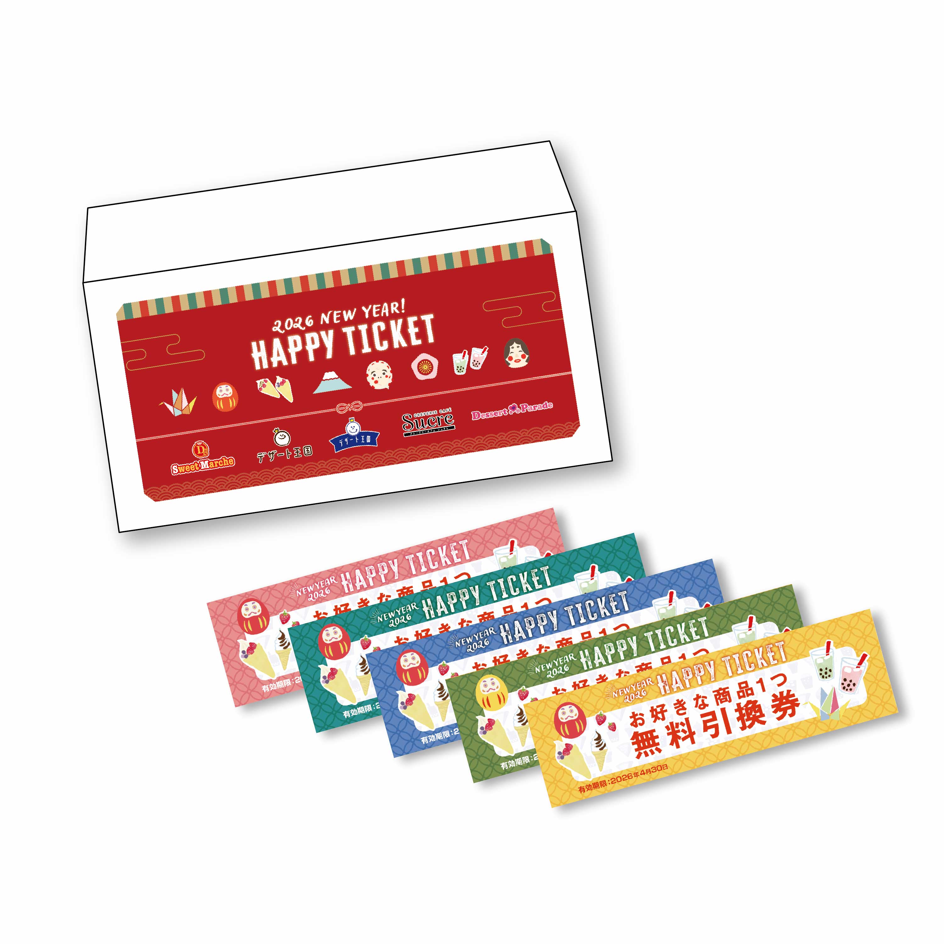毎年好評いただいております、デザート王国などでご利用いただける「 福袋!ハッピーチケット」を今年も発売いたします。